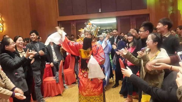 迎春晚会以集团高管变装登台开场,高管们一改往日工作中的严谨形象,或反串,或搞笑,一登场便炒热了现场气氛,随后,集团董事长王子林先生以财神爷形象,手捧金元宝出现在会场,从进口处开始一路挥洒糖果与红包,现场顿时一片沸腾。